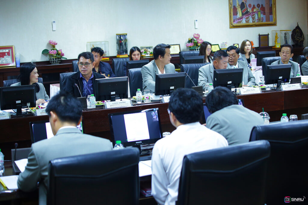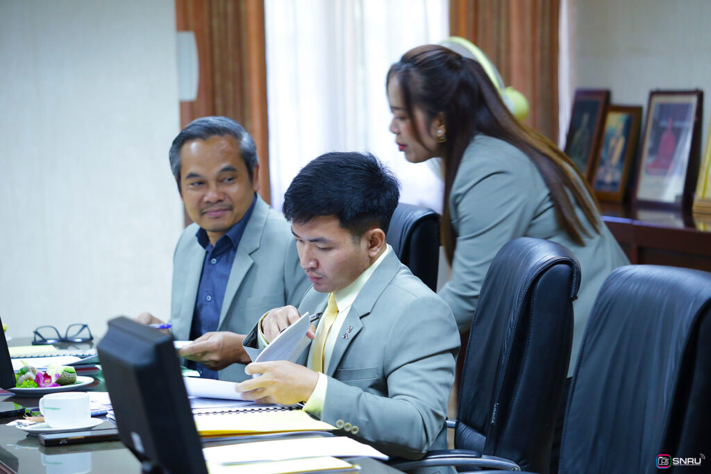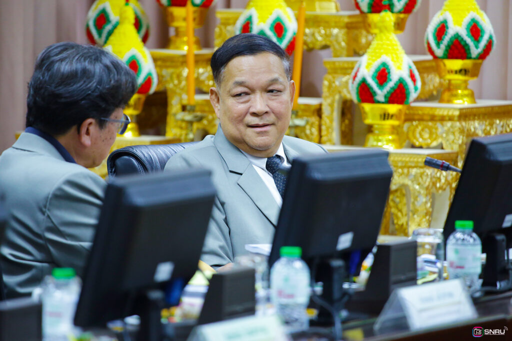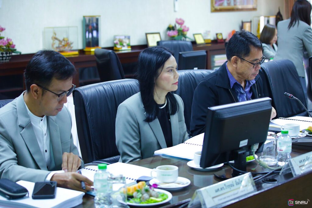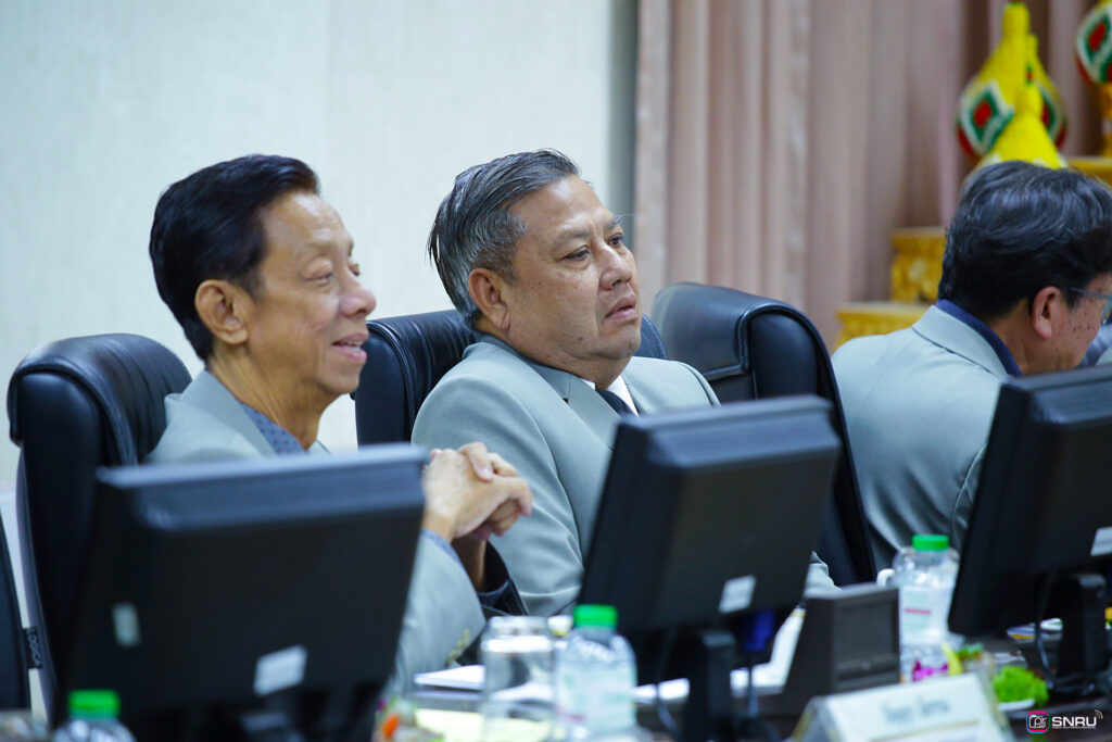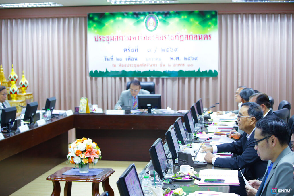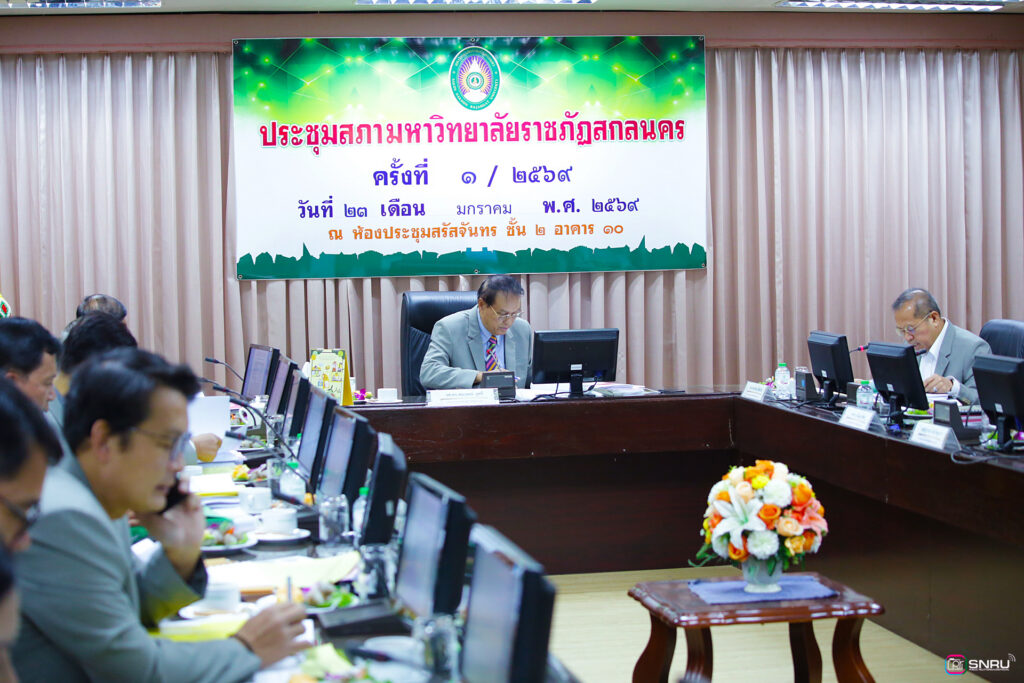 วันที่ 23 มกราคม 2569 นางสาวณัฐพิมล วัชรกุล หัวหน้างานบริหารทั่วไป กองกลาง สำนักงานอธิการบดี และนางศิริปภาวี วิชาชาติ เจ้าหน้าที่บริหารงานทั่วไป เข้าร่วมปฏิบัติหน้าที่ผู้ช่วยเลขานุการ ในการประชุมสภามหาวิทยาลัยฯ ครั้งที่ 1/2569 โดยมี รศ.ดร.สมเจตน์ ภูศรี นายกสภามหาวิทยาลัยฯ เป็นประธานในการประชุม พร้อมด้วยคณะกรรมการผู้ทรงคุณวุฒิ และคณะกรรมการสภามหาวิทยาลัย เข้าร่วมประชุมเพื่อพิจารณาในวาระสำคัญต่างๆ ณ ห้องประชุมสรัสจันทร อาคาร 10 มหาวิทยาลัยราชภัฏสกลนคร