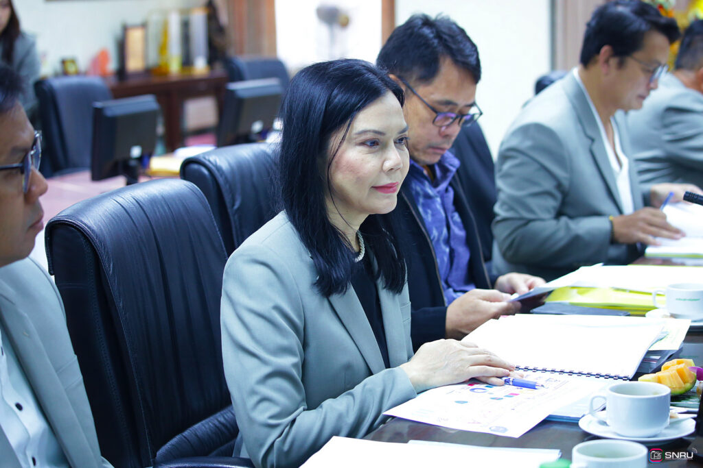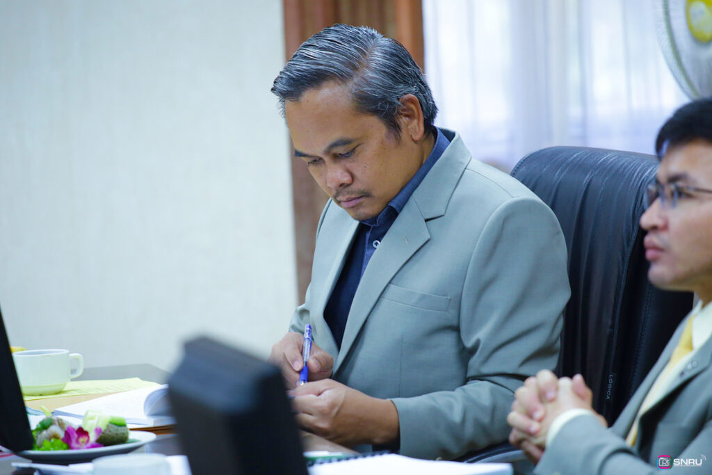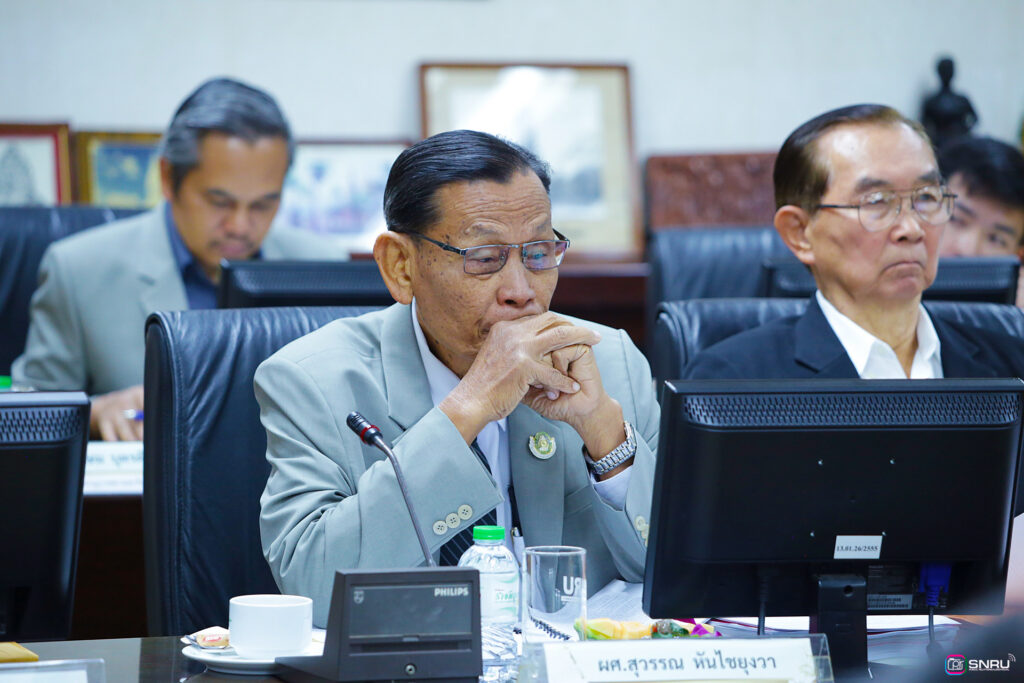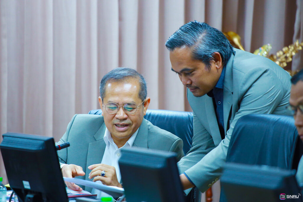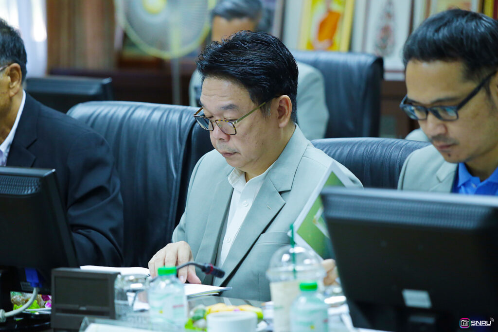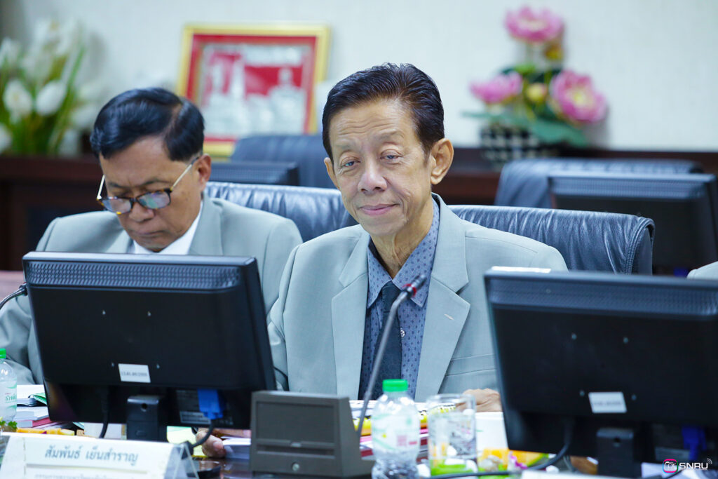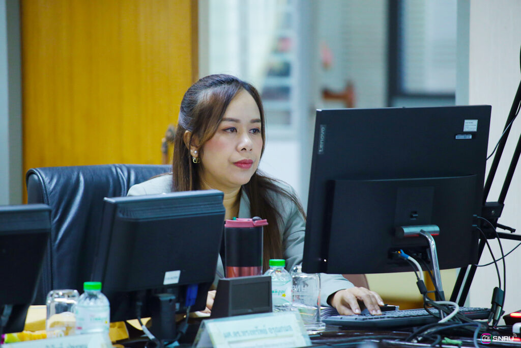 วันที่ 23 มกราคม 2569 นางสาวณัฐพิมล วัชรกุล หัวหน้างานบริหารทั่วไป กองกลาง สำนักงานอธิการบดี และนางศิริปภาวี วิชาชาติ เจ้าหน้าที่บริหารงานทั่วไป เข้าร่วมปฏิบัติหน้าที่ผู้ช่วยเลขานุการ ในการประชุมสภามหาวิทยาลัยฯ ครั้งที่ 1/2569 โดยมี รศ.ดร.สมเจตน์ ภูศรี นายกสภามหาวิทยาลัยฯ เป็นประธานในการประชุม พร้อมด้วยคณะกรรมการผู้ทรงคุณวุฒิ และคณะกรรมการสภามหาวิทยาลัย เข้าร่วมประชุมเพื่อพิจารณาในวาระสำคัญต่างๆ ณ ห้องประชุมสรัสจันทร อาคาร 10 มหาวิทยาลัยราชภัฏสกลนคร
