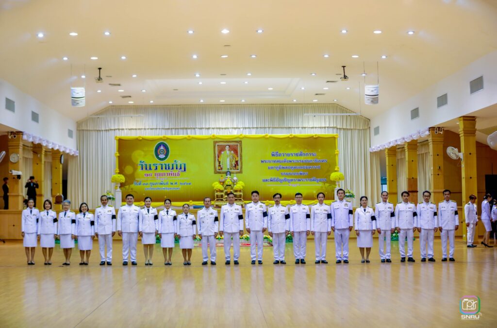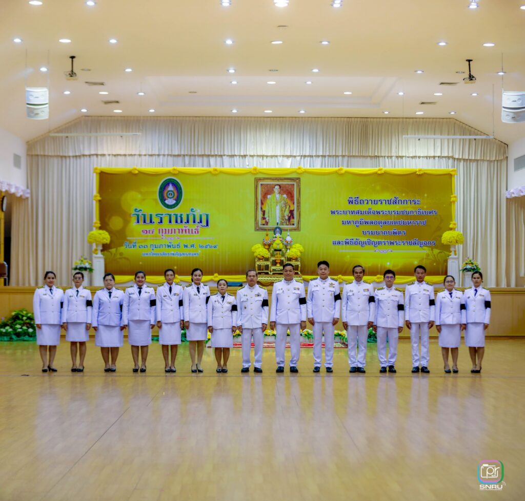วันที่ 11 กุมภาพันธ์ 2569 งานบริหารทั่วไป กองกลาง สำนักงานอธิการบดี เข้าปฏิบัติงานและร่วมกิจกรรม 14 กุมภาพันธ์ “วันราชภัฏ” ประจำปี พ.ศ. 2569 ณ หอประชุมจามจุรี 1 โดยมี ผศ.ชาคริต ชาญชิตปรีชา อธิการบดี พร้อมด้วยคณะผู้บริหาร อาจารย์ บุคลากร และนักศึกษา ร่วมพิธีถวายราชสักการะวางพานพุ่มดอกไม้ และกล่าวน้อมสำนึกในพระมหากรุณาธิคุณ พระบาทสมเด็จพระบรมชนกาธิเบศ มหาภูมิพลอดุลยเดชมหาราช บรมนาถบพิตร พิธีอัญเชิญตราพระราชลัญจกร และร่วมร้องเพลงสรรเสริญพระบารมี เพื่อเป็นการน้อมสำนึกในพระมหากรุณาธิคุณ ที่ทรงโปรดเกล้าฯ พระราชทานนาม “สถาบันราชภัฏ” ให้กับวิทยาลัยครูทั่วประเทศ เมื่อวันที่ 14 กุมภาพันธ์ 2535