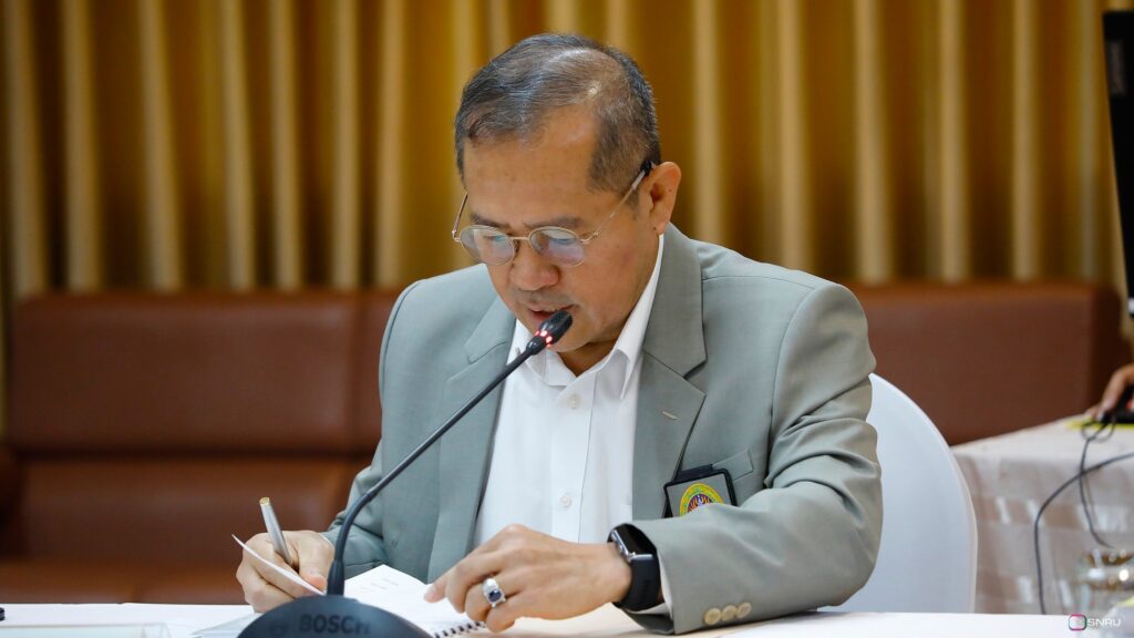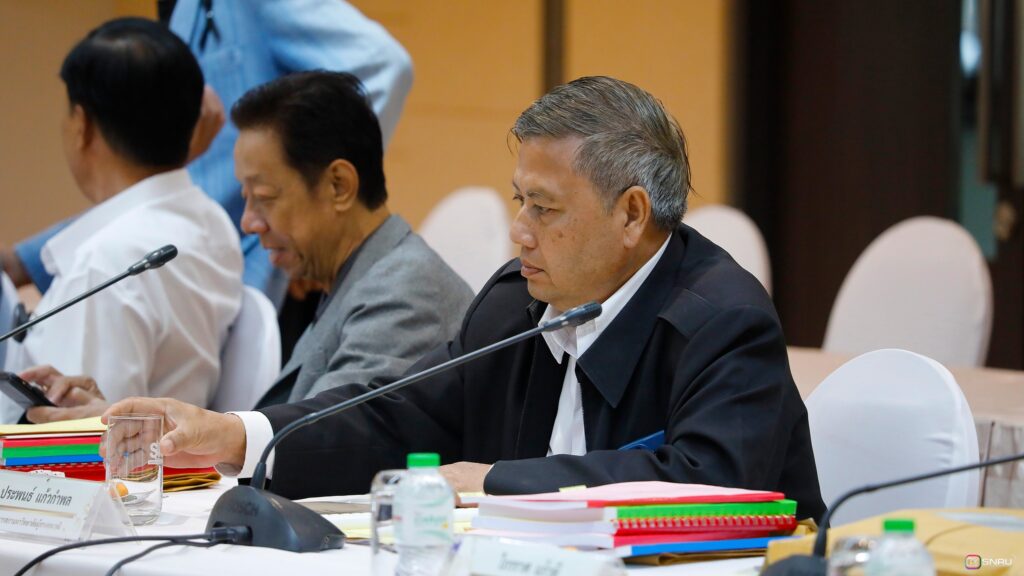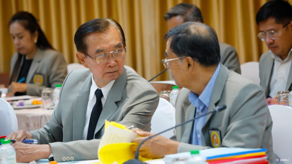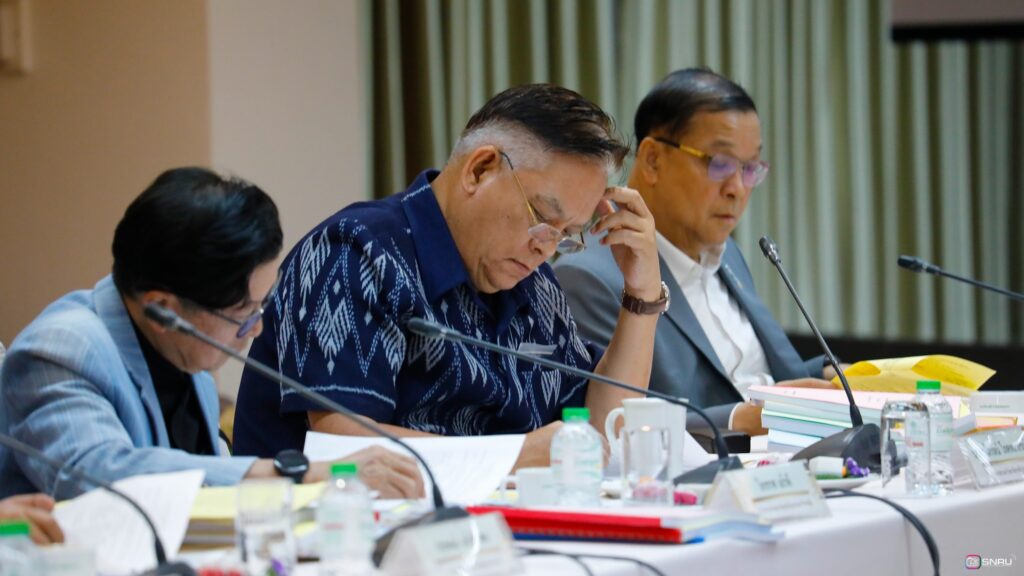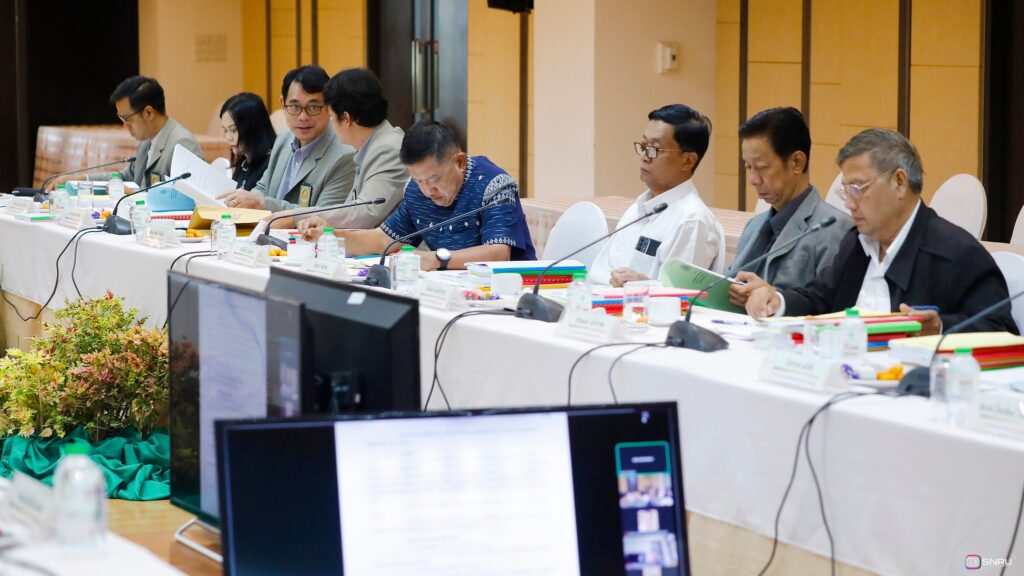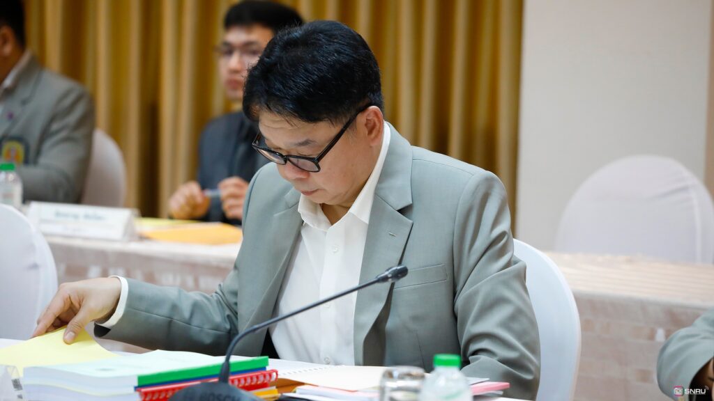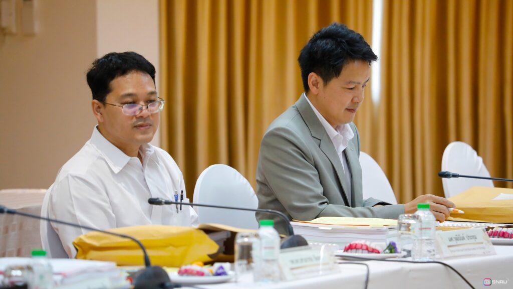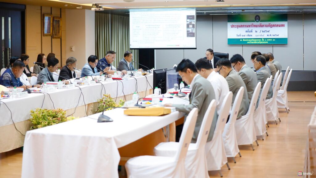 วันที่ 27 กุมภาพันธ์ 2569 นางสาวณัฐพิมล วัชรกุล หัวหน้างานบริหารทั่วไป กองกลาง สำนักงานอธิการบดี และนางศิริปภาวี วิชาชาติ เจ้าหน้าที่บริหารงานทั่วไป เข้าร่วมปฏิบัติหน้าที่ผู้ช่วยเลขานุการ ในการประชุมสภามหาวิทยาลัยฯ ครั้งที่ 2/2569 โดยมี รศ.ดร.สมเจตน์ ภูศรี นายกสภามหาวิทยาลัยฯ เป็นประธานในการประชุม พร้อมด้วยคณะกรรมการผู้ทรงคุณวุฒิ และคณะกรรมการสภามหาวิทยาลัย เข้าร่วมประชุมเพื่อพิจารณาในวาระสำคัญต่างๆ ณ ห้องประชุมสร้อยสุวรรณา อาคาร 10 มหาวิทยาลัยราชภัฏสกลนคร