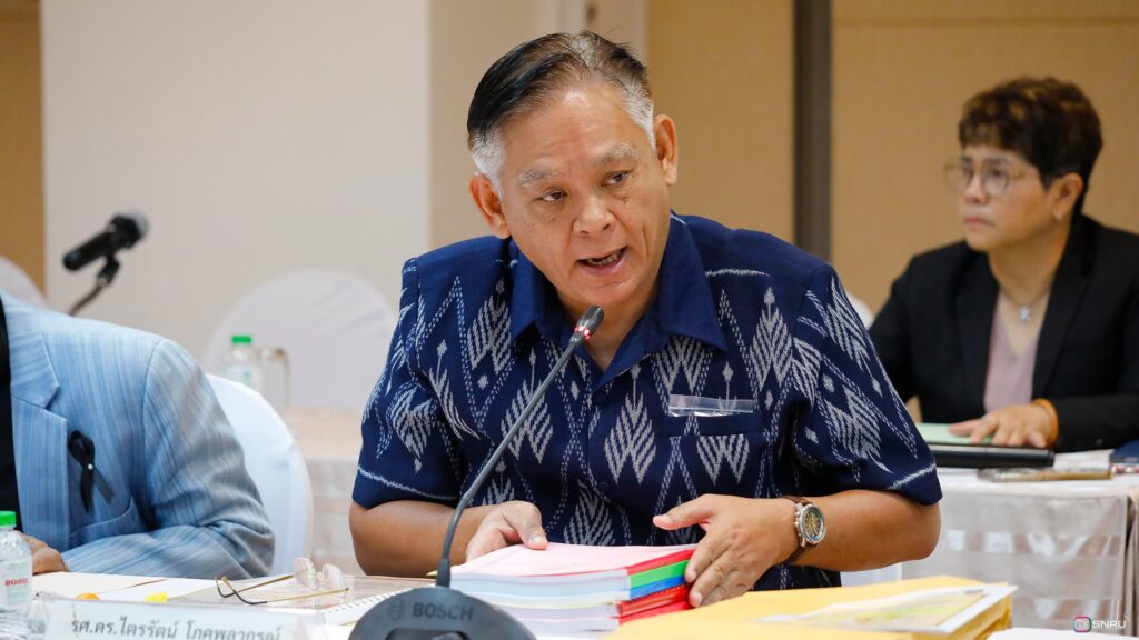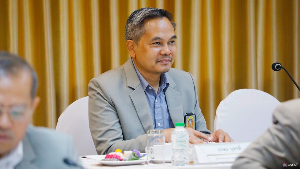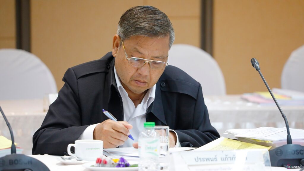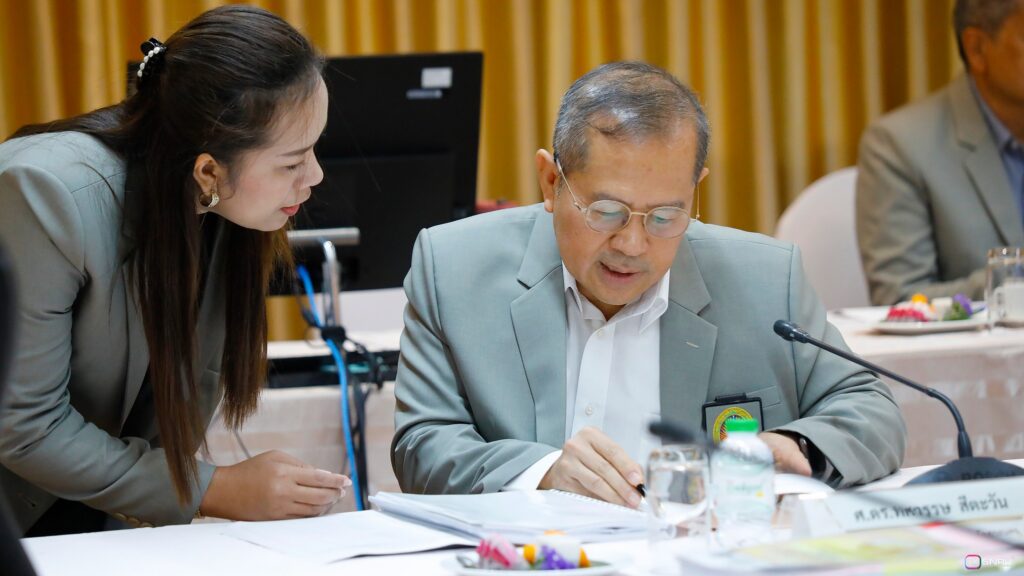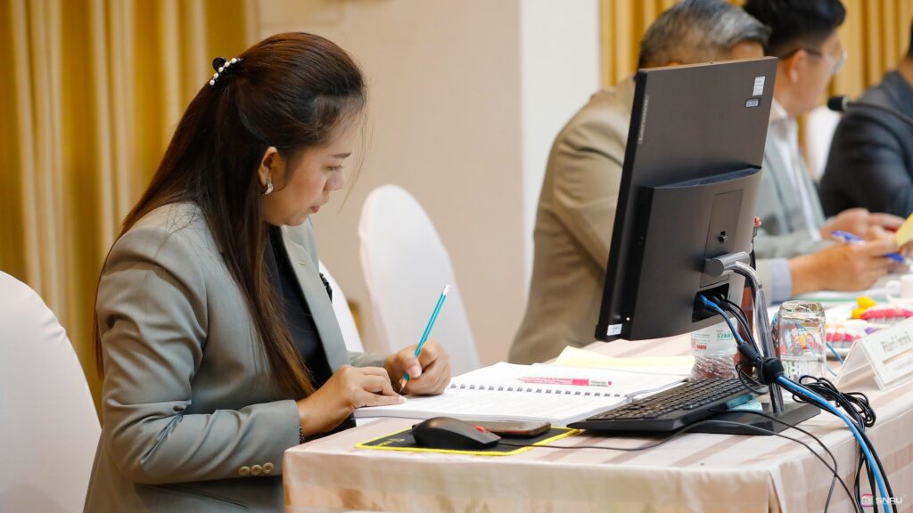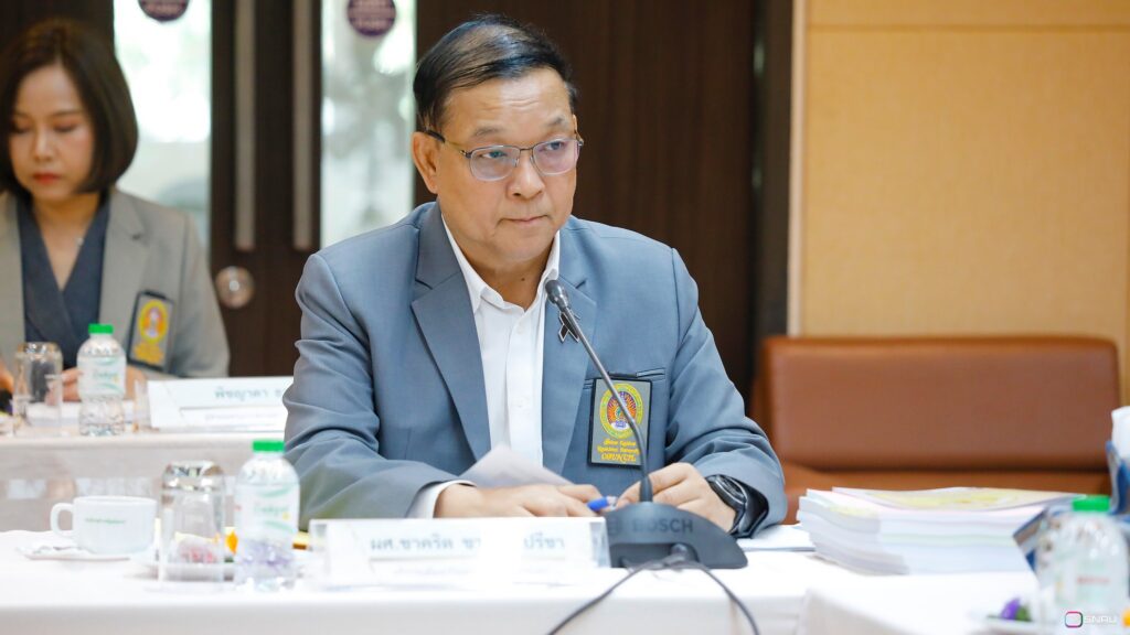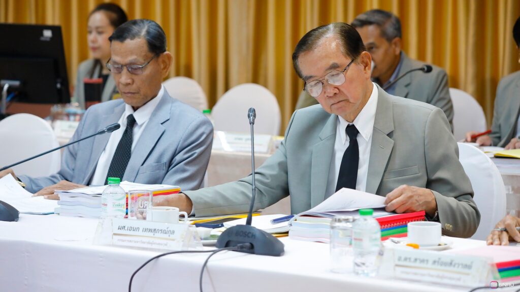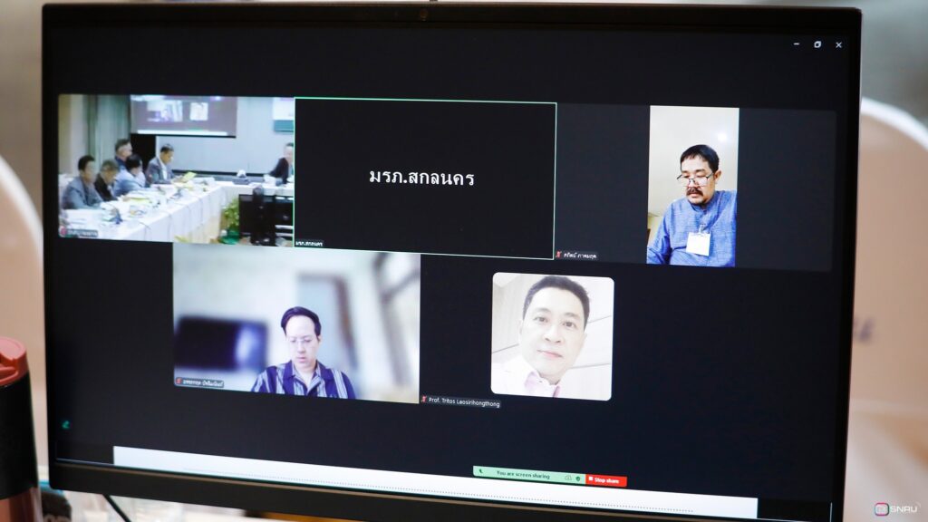 วันที่ 27 กุมภาพันธ์ 2569 นางสาวณัฐพิมล วัชรกุล หัวหน้างานบริหารทั่วไป กองกลาง สำนักงานอธิการบดี และนางศิริปภาวี วิชาชาติ เจ้าหน้าที่บริหารงานทั่วไป เข้าร่วมปฏิบัติหน้าที่ผู้ช่วยเลขานุการ ในการประชุมสภามหาวิทยาลัยฯ ครั้งที่ 2/2569 โดยมี รศ.ดร.สมเจตน์ ภูศรี นายกสภามหาวิทยาลัยฯ เป็นประธานในการประชุม พร้อมด้วยคณะกรรมการผู้ทรงคุณวุฒิ และคณะกรรมการสภามหาวิทยาลัย เข้าร่วมประชุมเพื่อพิจารณาในวาระสำคัญต่างๆ ณ ห้องประชุมสร้อยสุวรรณา อาคาร 10 มหาวิทยาลัยราชภัฏสกลนคร