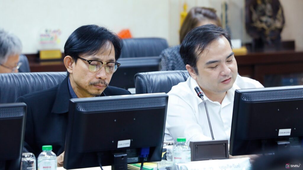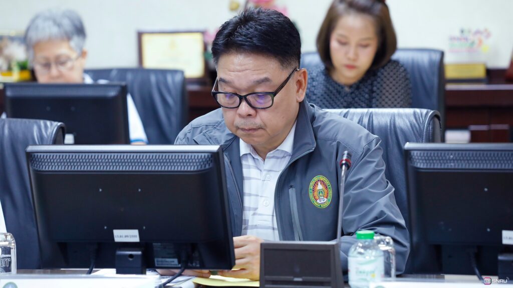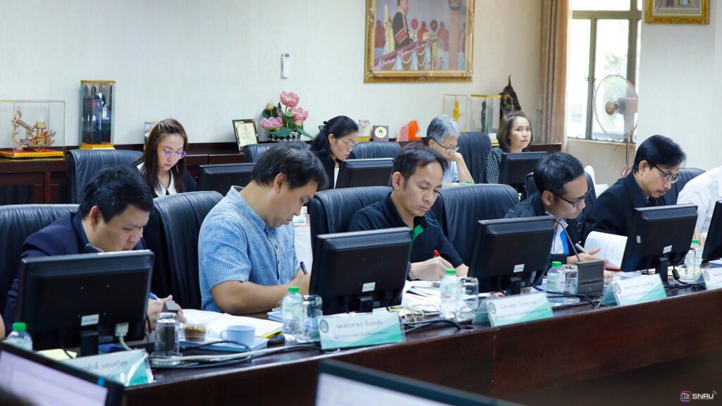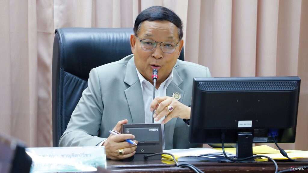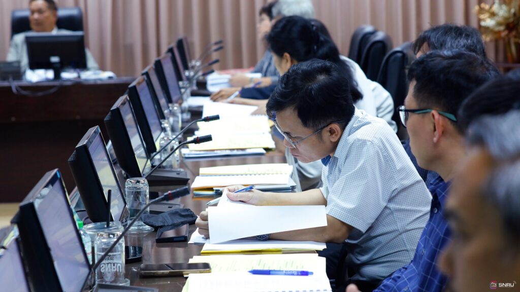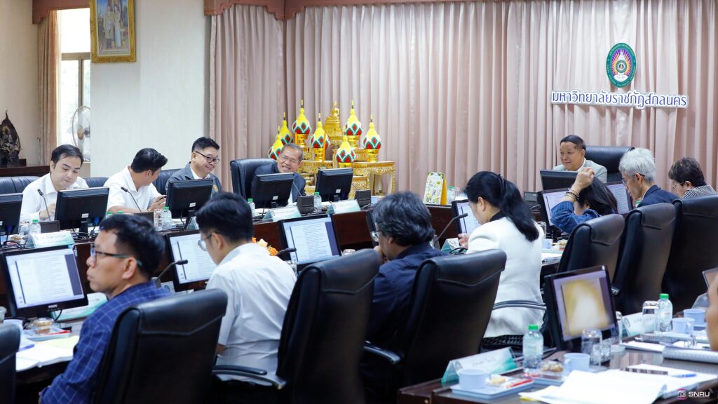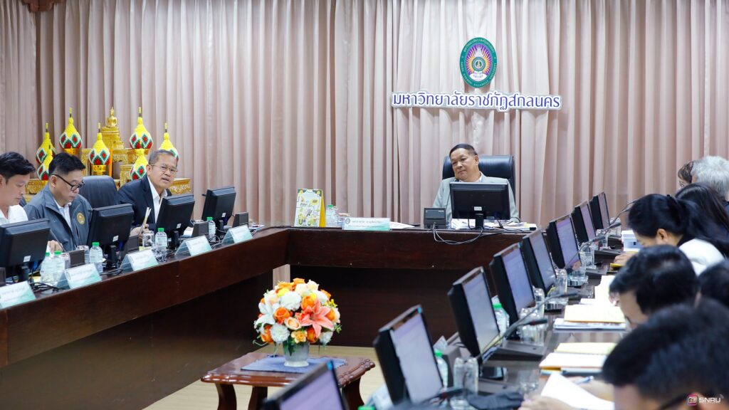 วันที่ 17 มีนาคม 2569 นางสาวณัฐพิมล วัชรกุล หัวหน้างานบริหารทั่วไป และนางสาวสุภาพร ศิริขันธ์ เจ้าหน้าที่บริหารงานทั่วไป เข้าร่วมการประชุมและปฏิบัติหน้าที่ในการประชุมคณะกรรมการบริหารมหาวิทยาลัยราชภัฏสกลนคร (กบ.) และ คณะกรรมการบริหารบุคคลในมหาวิทยาลัยราชภัฏสกลนคร (กบม.) ครั้งที่ 3/2569 โดย ผศ.ชาคริต ชาญชิตปรีชา อธิการบดีมหาวิทยาลัยราชภัฏสกลนคร เป็นประธานในที่ประชุม พร้อมด้วยคณะกรรมการผู้ทรงคุณวุฒิ เข้าร่วมประชุมเพื่อพิจารณาในวาระสำคัญต่างๆ ณ ห้องประชุมสรัสจันทร อาคาร 10 มหาวิทยาลัยราชภัฏสกลนคร