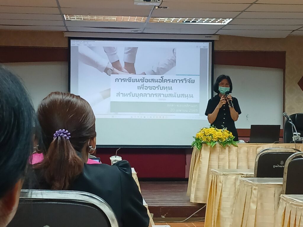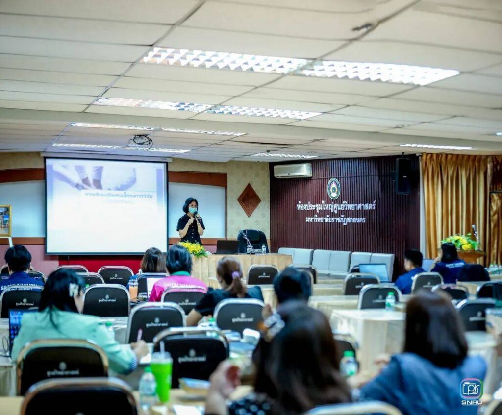 วันที่ 20 เมษายน พ.ศ. 2569 นางสาวณัฐพิมล วัชรกุล หัวหน้างานบริหารทั่วไป กองกลาง สำนักงานอธิการบดี แฃะนางนุชนารถ พิมกร เจ้าหน้าที่บริหารงานทั่วไปปฏิบัติการ เข้าร่วมการอบรมเชิงปฏิบัติการหัวข้อ “เทคนิคการเขียนข้อเสนอโครงการวิจัยเพื่อขอรับทุนสำหรับบุคลากรสายสนับสนุน” จัดโดยสถาบันวิจัยและพัฒนา มหาวิทยาลัยราชภัฏสกลนคร และได้รับเกียรติจาก ผู้ช่วยศาสตราจารย์ ดร.สาคร อินทะชัย ผู้อำนวยการสถาบันวิจัยและพัฒนา เป็นประธานในพิธีเปิด และ ดร.สุทิศา ซองเหล็กนอก คณะวิทยาศาสตร์และเทคโนโลยี เป็นวิทยากรบรรยายถ่ายทอดความรู้ การอบรมครั้งนี้มีวัตถุประสงค์เพื่อเสริมสร้างความเข้าใจและแนวทางการเขียนข้อเสนอโครงการวิจัยสำหรับการขอรับทุนสนับสนุนจากงบประมาณเงินรายได้ของมหาวิทยาลัย โดยมุ่งเน้นการพัฒนาทักษะการเขียนให้มีความชัดเจน ตรงประเด็น และน่าสนใจ เพื่อเพิ่มโอกาสในการได้รับทุนวิจัย ณ ห้องประชุมใหญ่ศูนย์วิทยาศาสตร์ ชั้น 1 อาคาร 9 มหาวิทยาลัยราชภัฏสกลนคร