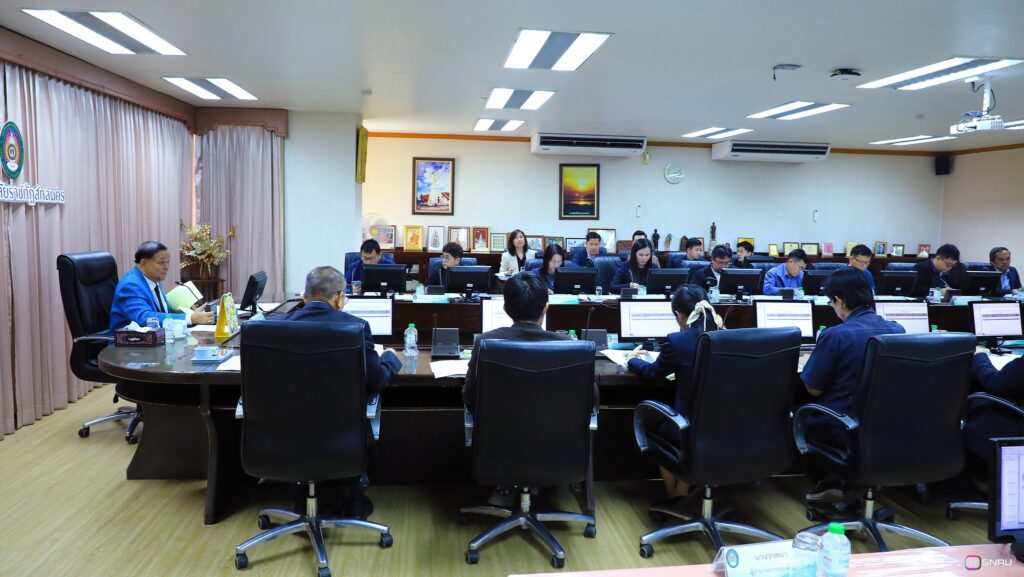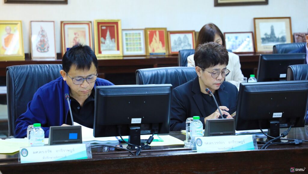 วันที่ 15 มกราคม 2569 นางสาวณัฐพิมล วัชรกุล หัวหน้างานบริหารทั่วไป และนางสาวสุภาพร ศิริขันธ์ เจ้าหน้าที่บริหารงานทั่วไปปฏิบัติการ ปฏิบัติหน้าที่งานธุรการในการประชุมคณะกรรมการบริหารมหาวิทยาลัยราชภัฏสกลนคร (กบ.) และ คณะกรรมการบริหารบุคคลในมหาวิทยาลัยราชภัฏสกลนคร (กบม.) ครั้งที่ 1/2569 ณ ห้องประชุมสรัสจันทร อาคาร 10 มหาวิทยาลัยราชภัฏสกลนคร